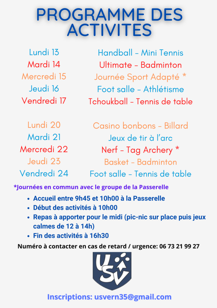 Programme des vacances de Printemps